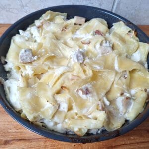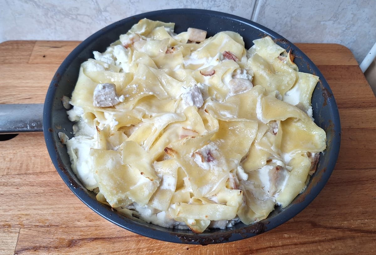 Kevés olyan étel van, ami annyira otthonos hangulatot áraszt, mint a túrós csusza. A hagyományos változatot most egy kis csavarral készítjük el: ropogós bacon és szaftos csirkemell kerül bele. Így egy igazán tartalmas, sütőben pirult tésztaételt kapunk, amit a család biztosan szeretni fog.