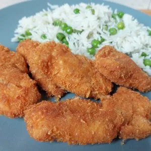 6. Panírozd be a csirkemell csíkokat, először forgasd meg a lisztben, utána a tojásban, végül a sajtos zsemlemorzsában.